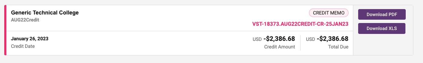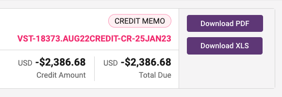 - Invoice Number (e.g. VST-18373-AUG22CREDIT-CR-25JAN23)