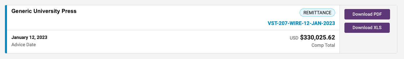 - VitalSource Remittance Number (e.g. VST-207-WIRE-12-JAN-2023)