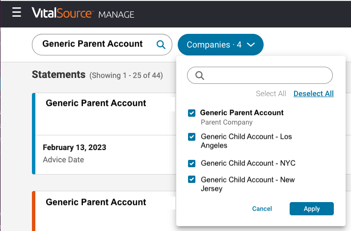 The Financial Statement center is a centralized location in Manage where you can access copies of historical financial statements from 2021 to the present. Financial Statements will still be sent from VitalSource via email or SFTP; however, copies are now also accessible in the Financial Statements Center. Previously these historical records were only available by requesting them from your Customer Success Manager or VitalSource’s Finance Team.