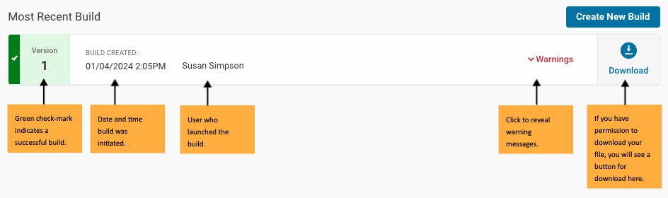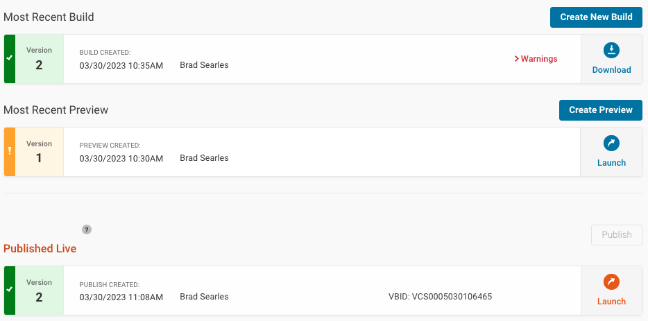 Click Create New Build to make a new build that incorporates your most recent changes. Once your build is complete, click Create Preview to see your changes.