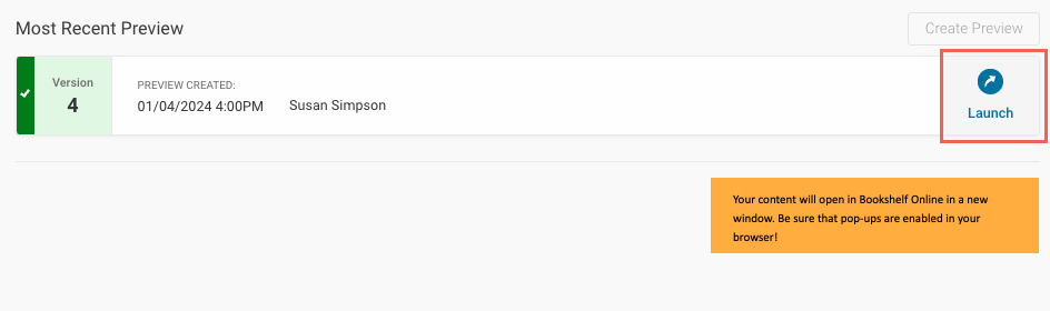 Previewing allows you to review your content in Bookshelf online prior to making it available to your customers.
