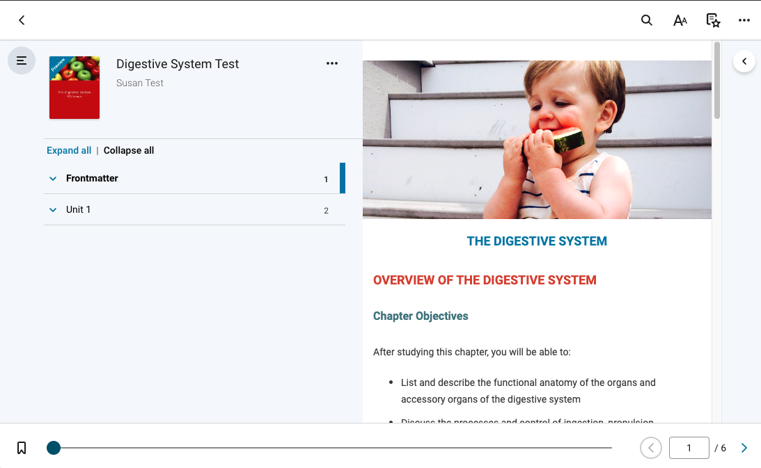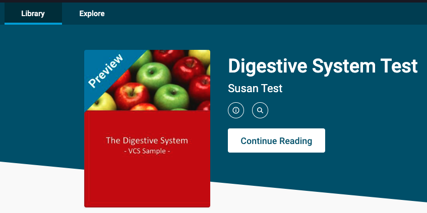 Once you've crossed over to Bookshelf, you will see your content displayed in the e-reader.