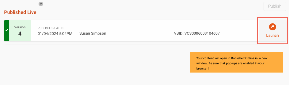 After Bookshelf ingestion is completed, use the launch button to open Bookshelf and see your content.